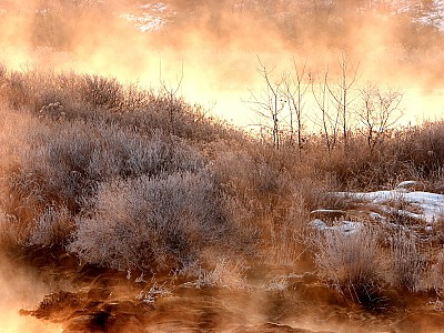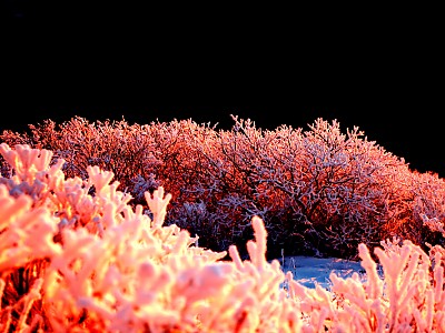 붉은여명빛+물안개+상고대