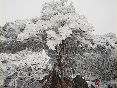 덕유 대표 미인주목 이다. 그러나 거리가 짧아 촬영조건이 최악이고 주변이 받혀주질 안는다. 광각랜즈 이어야 촬영 가능하다.