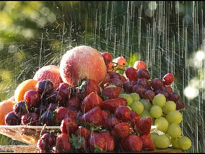 추운 겨울 감기 예방에도 좋구... 미용에도 좋은 과일을 보내 드립니다. 좌로 부터 살구 체리 복숭아 딸기 청포도와 검포도 그리고 뒤에 사과가 숨어 있습니다. ㅎㅎㅎ